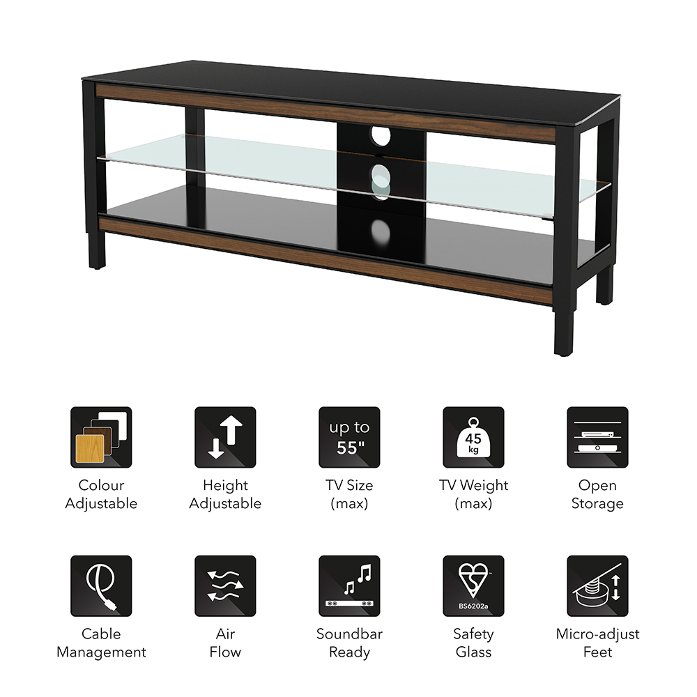Over time the style of your room may change, now your TV Stand can change with it. Interchangeable colour panels help match the current style in your living space.