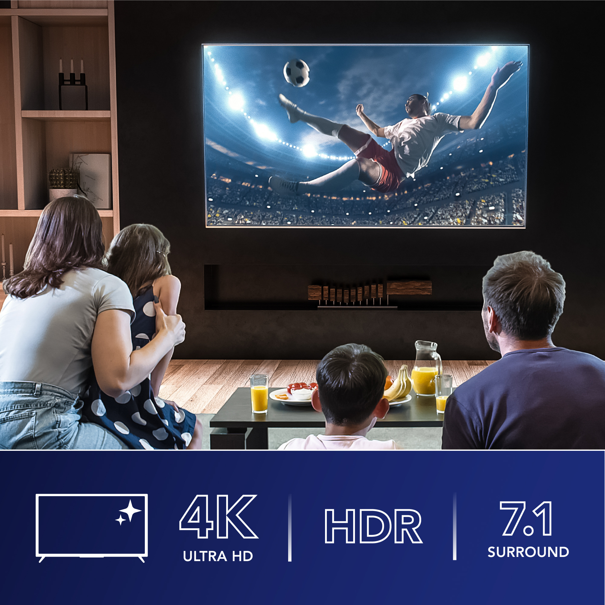 Make the most of every pixel, with support for 4K Ultra HD (2160p) video at silky-smooth 60Hz frame rates, and enjoy vivid colour depth and deep contrast with HDR (High Dynamic Range). ARC/eARC delivers immersive 7.1 surround sound and high-quality audio formats to compatible soundbars.