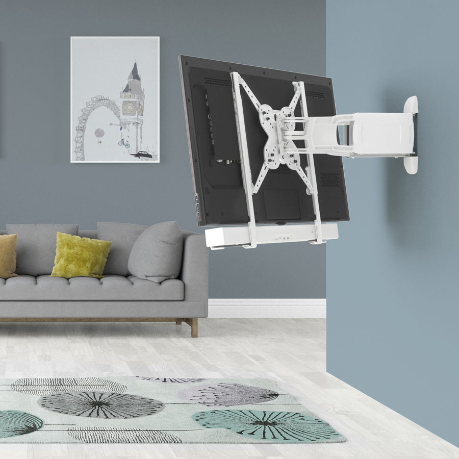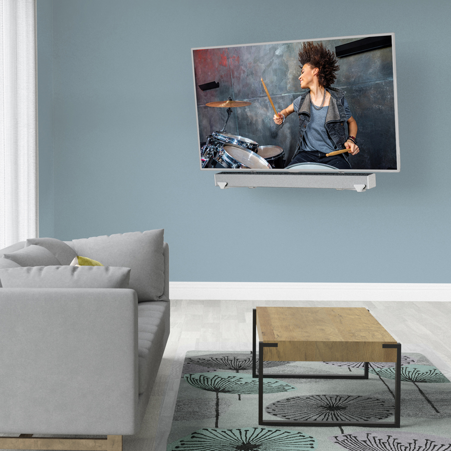 Fixing your sound bar to your TV allows the sound bar to move with the screen enhancing your viewing experience.