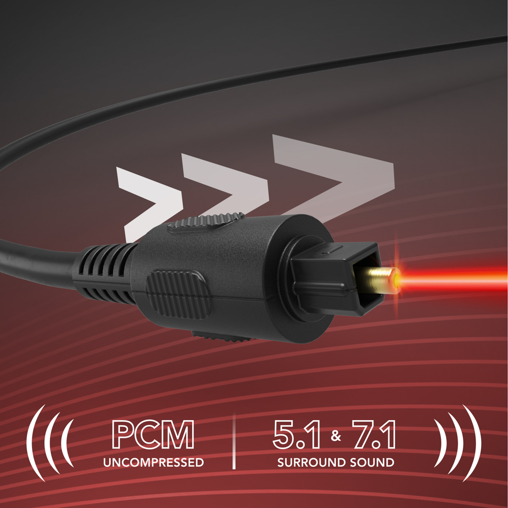 Experience superior sound quality with the AVF Digital Optical Cable range. Transfer digital audio signals between devices such as TVs, soundbars, speaker systems and AV receivers. Supports 5.1 and 7.1 surround sound in a variety of formats, or enjoy uncompressed 2-channel PCM audio.