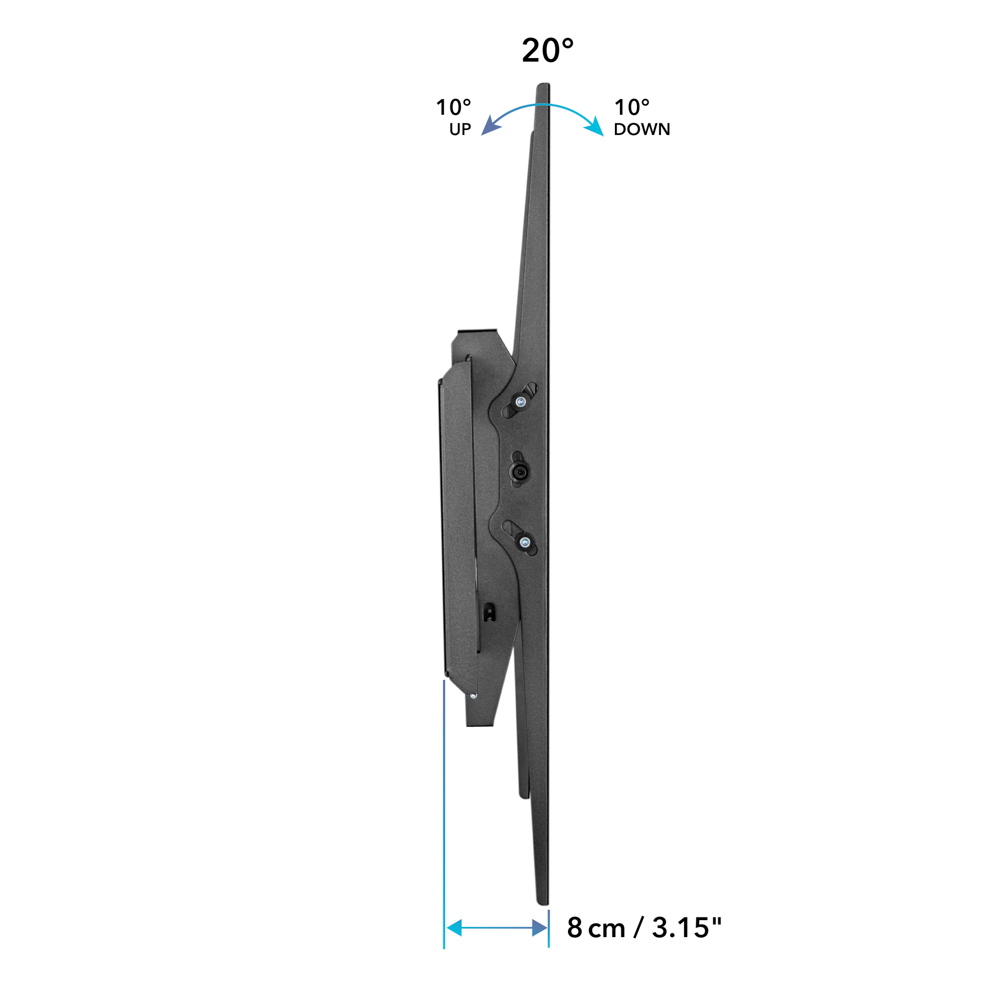 The heavy duty AR-RB1025L is perfect for TVs 60-100″ and up to 120kg in weight. It tilts 10° up and down to reduce on-screen reflections and improve the viewing angle if the centre of the TV is above eye level.