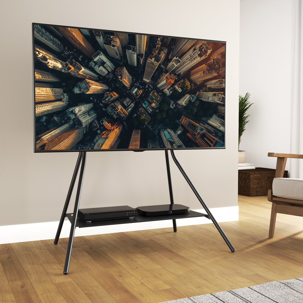 - Secure your TV at a comfortable viewing height and create an on-trend room look