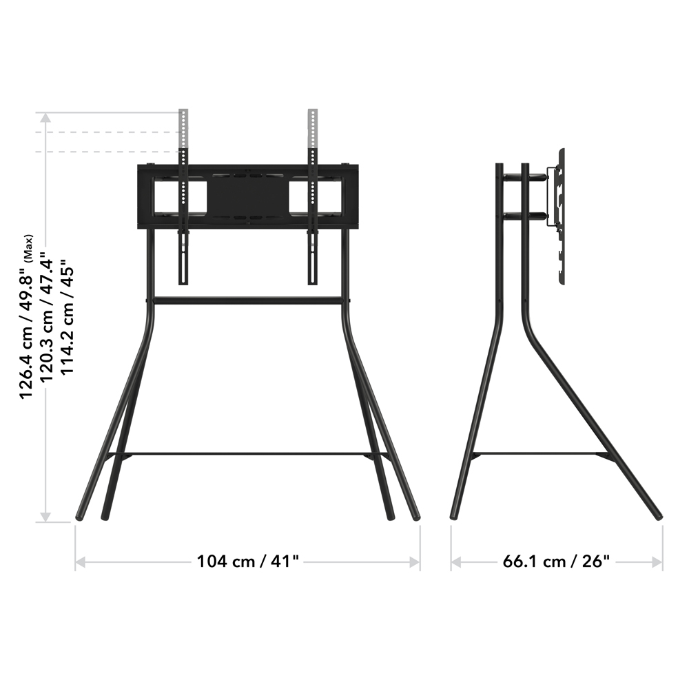 Create an on-trend, minimal look in any room, with the cool metal Tiga Quad TV Stand. With three height settings, you can securely mount a 32-83” screen (up to 45kg) at your desired viewing height and then turn up to 22.5 degrees left or right to perfect your viewing angle or reduce on-screen reflections.