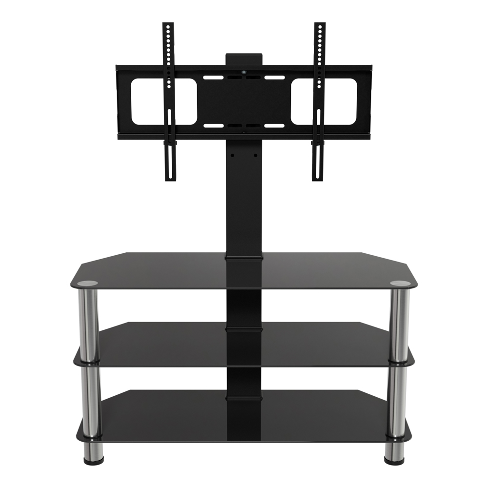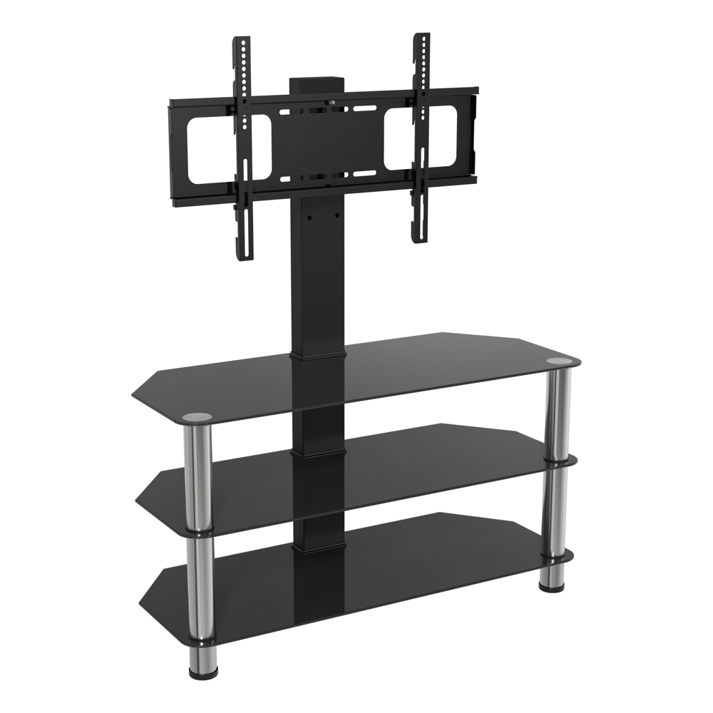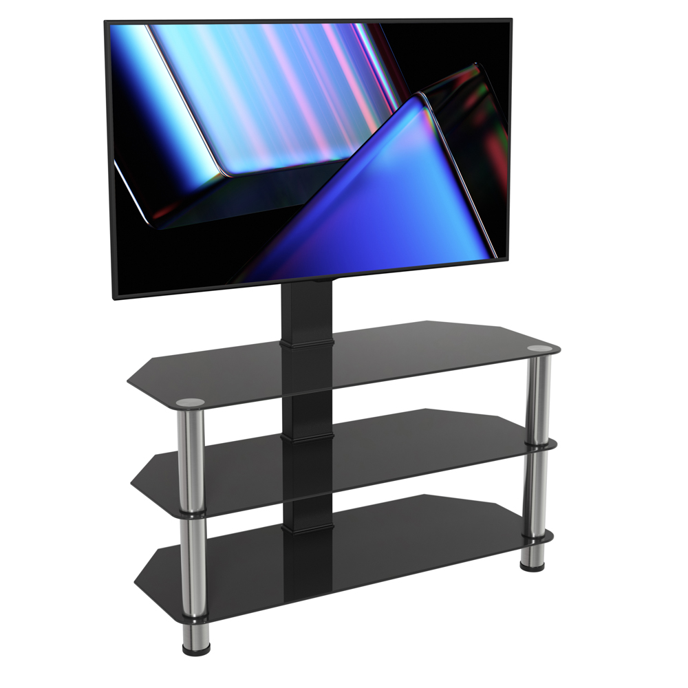 SDCL900: Classic 90cm Glass Corner TV Stand with Mount (Black & Chrome)