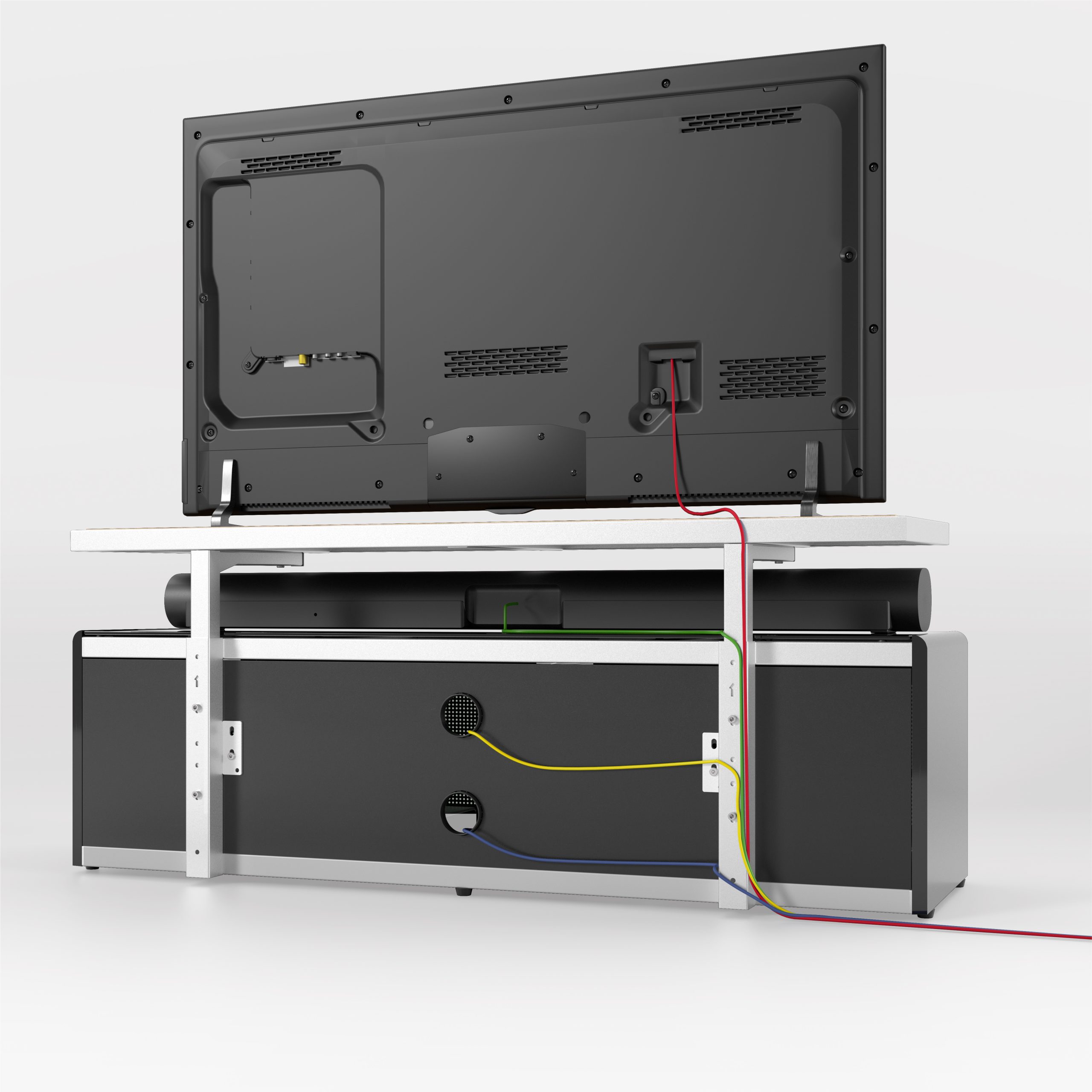 Raise or lower the TV platform to achieve your perfect TV viewing height while creating an open space beneath that is ideal for Speakers or a Sound Bar.