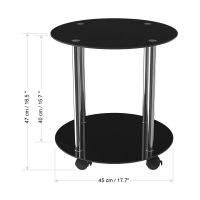 A circular two tier wheeled Table with black glass tops, chrome effect legs and lockable wheels. A must have versatile solution for your home needs that is sturdy in design and easy to assemble.